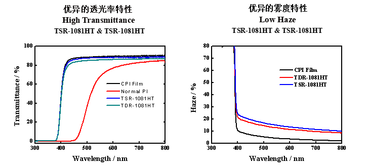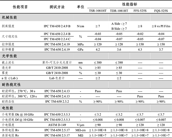 福斯特也開發了無色透明單/雙面板、復合膜和補強板等特殊基材。采用自主開發的無色透明聚酰亞胺,經過特殊工藝路線生產得到。無色透明單/雙面板產品具有高剝離強度,高透光率和低霧度,良好的耐浸焊性,優異的耐候性,可用于戶外顯示、戶外OLED屏等。復合膜和補強板具有高剝離強度,高平整性,高耐熱性,可用于制造高性能單面板和多層板。